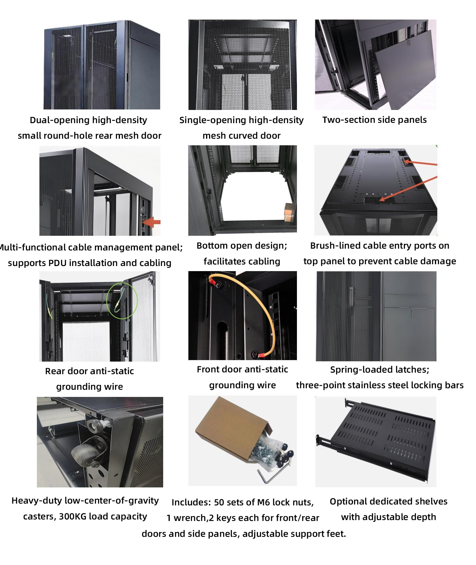 - معيار الخزانة: متوافق مع المعيار GB/T3047.2-92، ومتوافق مع المعيار الدولي 19"، والمعيار المتري ومعيار ETSI.