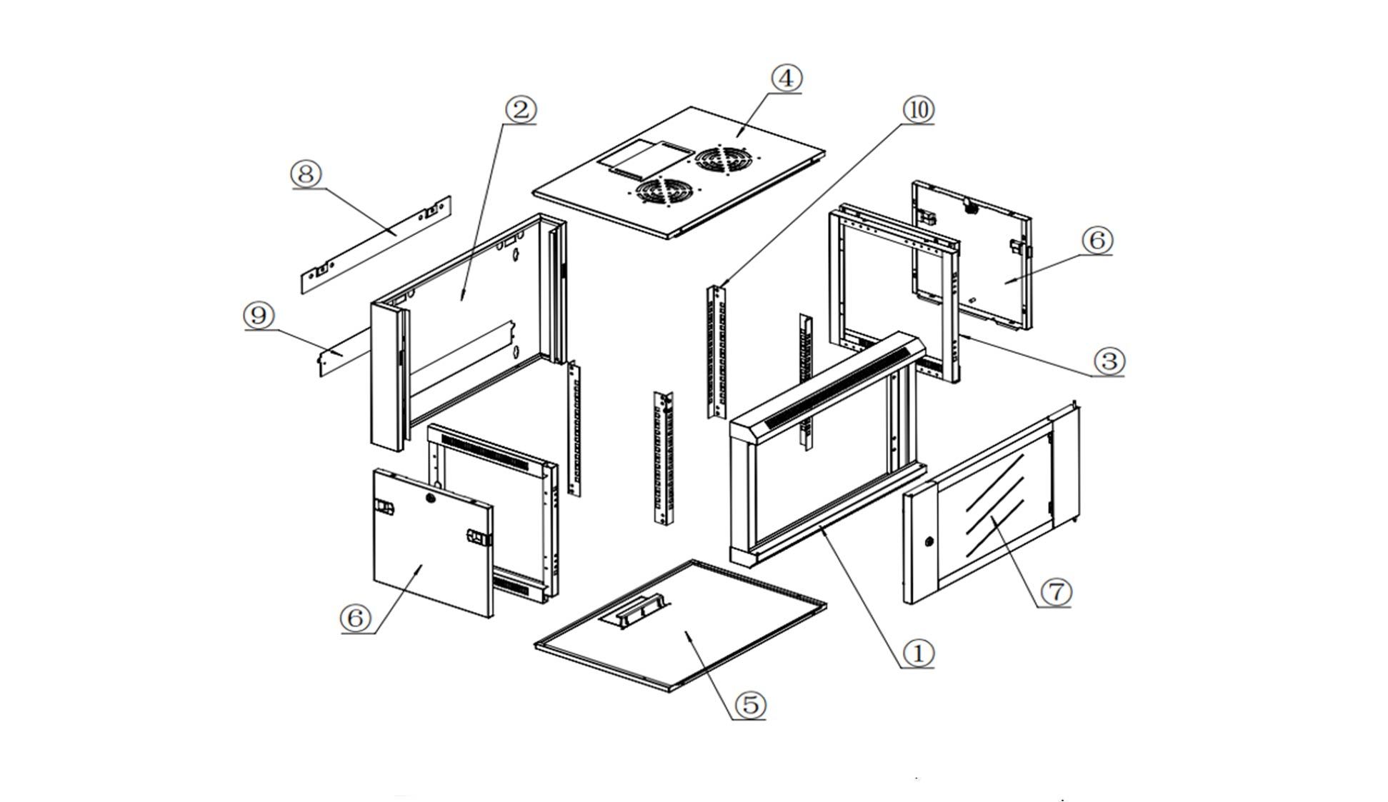 - Accesorios opcionales: ventiladores, fuentes de alimentación, bandejas, soportes, etc.;