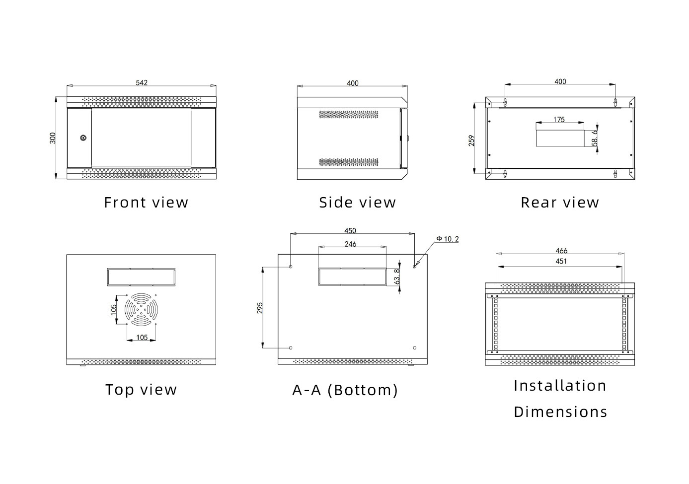 - Épaisseur : Bandes carrées perforées de 0,9 mm, porte avant de 0,7 mm ; Autres pièces de 0,5 mm ;