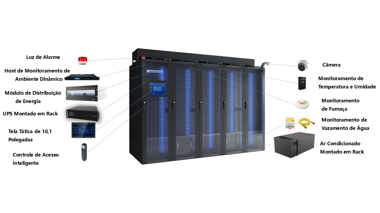 | Componentes Opcionais | Nome do Componente | Controle de acesso inteligente, alerta por SMS, monitoramento por vídeo, componentes para baixa temperatura, extensão de ar-condicionado, plataforma de gerenciamento centralizado, módulo ATS etc. | |