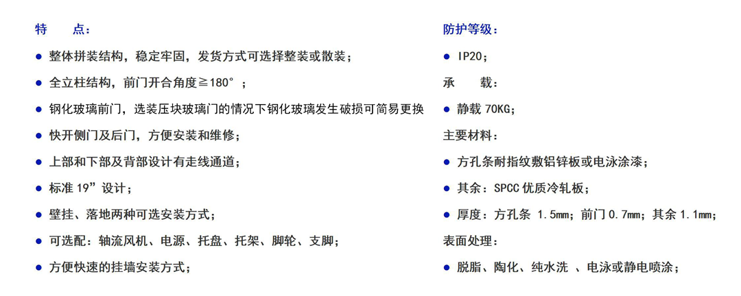 符合ANSI/EIA RS-310-D、IEC297-2、DIN41491; PART1、DIN41494; PART7、 GB/T3047.2- 92标准,执行EN60529/10.91,EN60529/IEC529,GB4208-93标准。