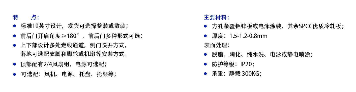 符合ANSI/EIA RS-310-D、IEC297-2、DIN41494;PART1、DIN41494;PART7、GB/T3047.2-92;兼容ETSI标准。