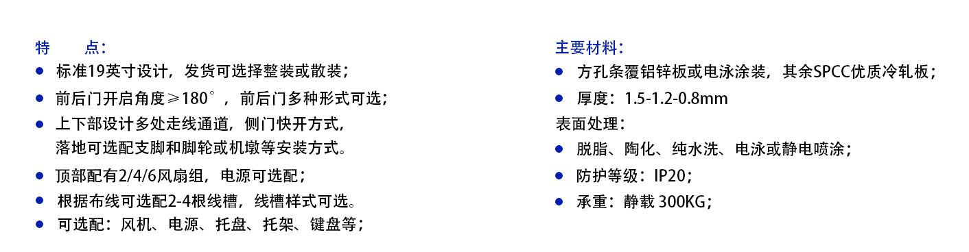 符合ANSI/EIA RS-310-D、IEC297-2、DIN41494;PART1、DIN41494;PART7、GB/T3047.2-92;兼容ETSI标准。