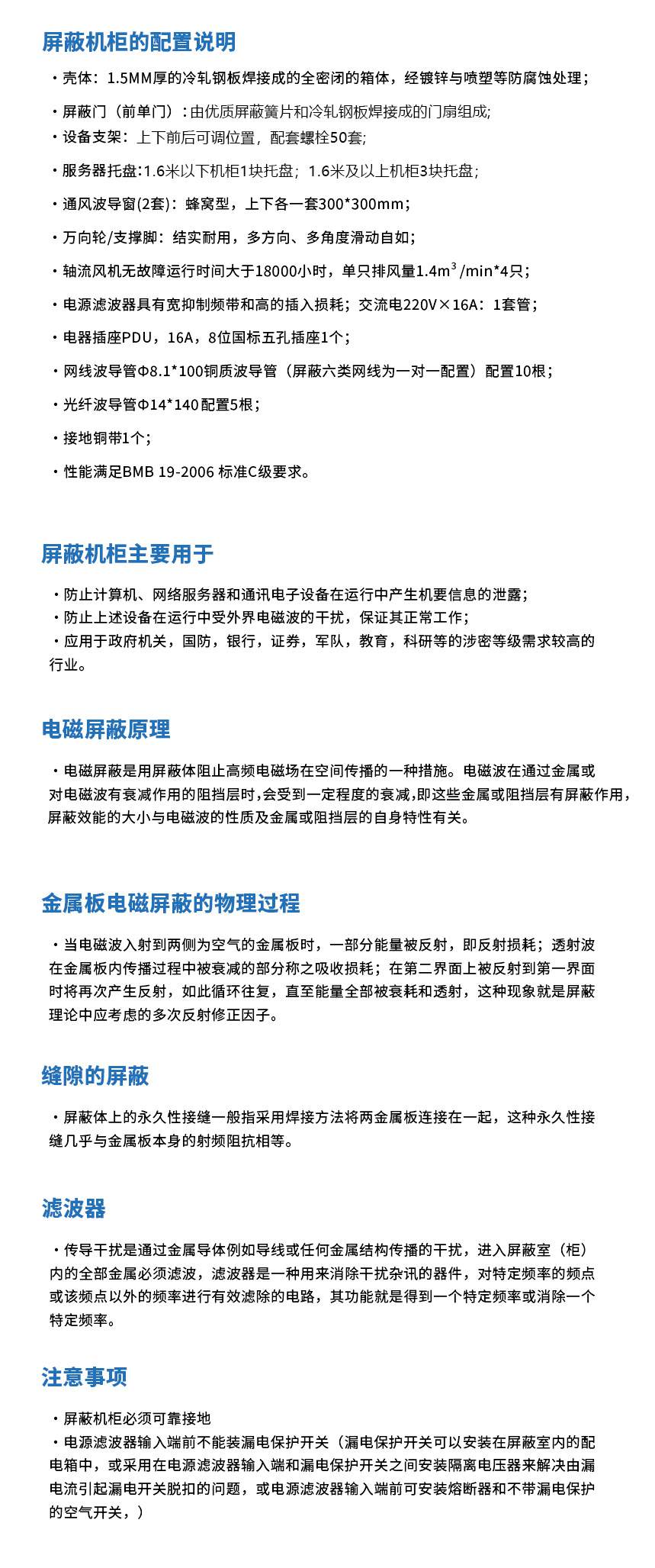符合ANSI/EIA RS-310-D、IEC297-2、DIN41494;PART1、DIN41494;PART7、符合 GB/T3047.2-92 标准,兼容 19"国际标准、公制标准和 ETSI 标准,兼容ETSI标准,满足国家保密标准 BMB19-2006 电磁泄露发射屏蔽机柜技术要求和测试方法 的C级标准;。
