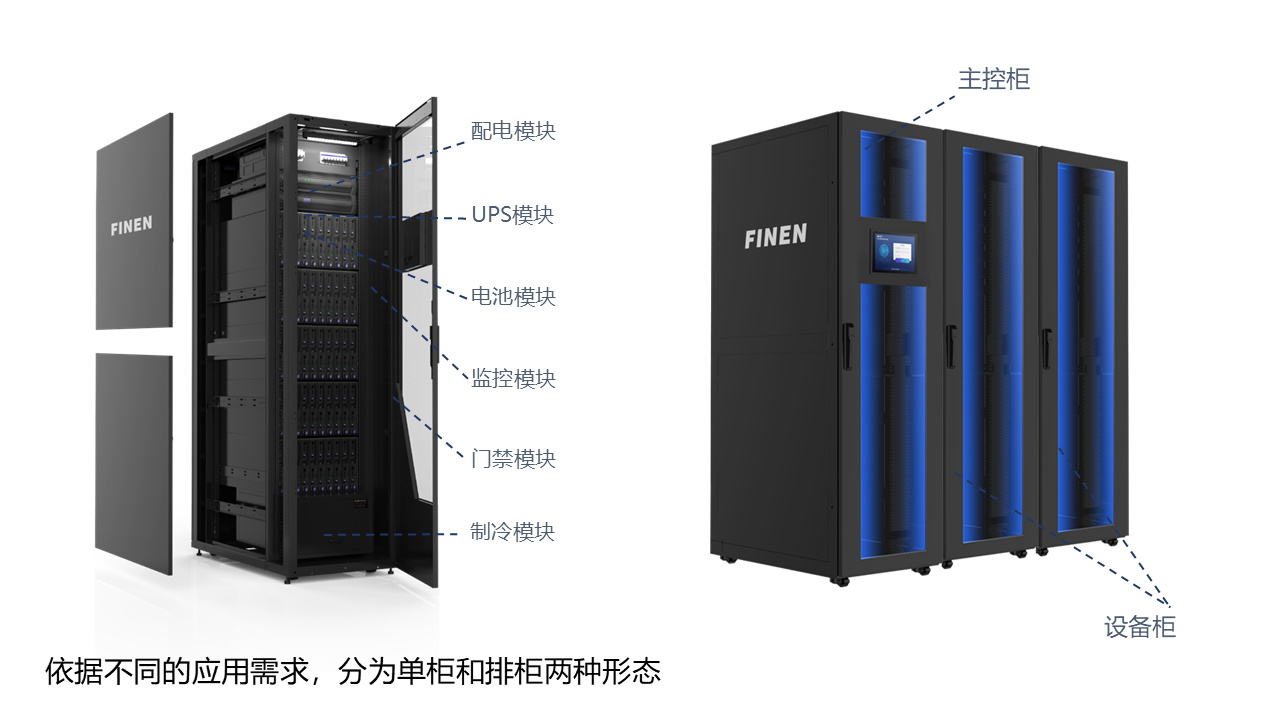 - 集成机柜、制冷、供配电、综合布线、消防、排风、接地、照明、监控等子系统,提供完整解决方案