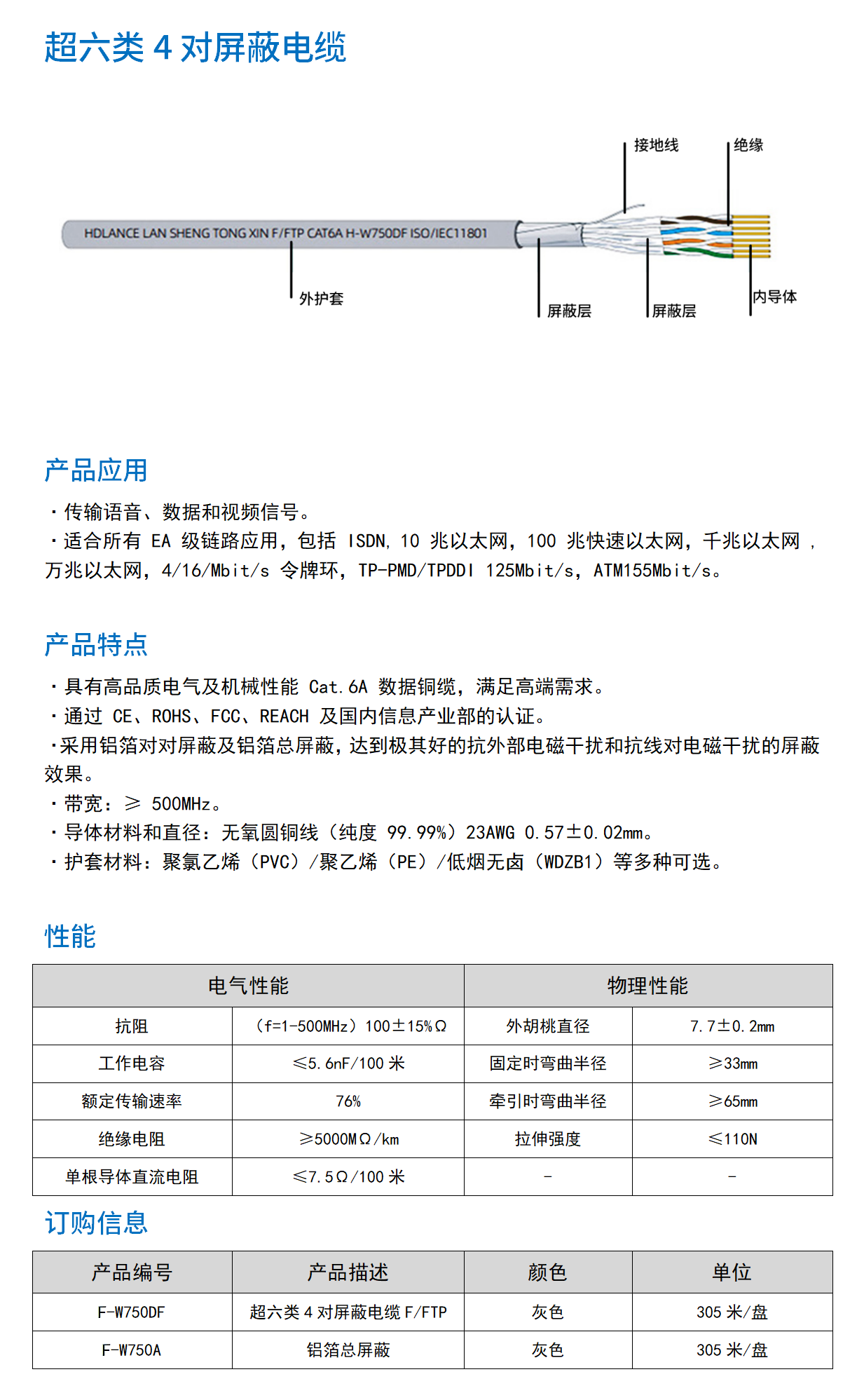 超六类4对屏蔽电缆