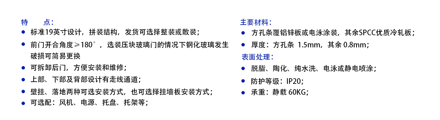 符合ANSI/EIA RS-310-D、IEC297-2、DIN41494;PART1、DIN41494;PART7、GB/T3047.2-92;兼容ETSI标准。