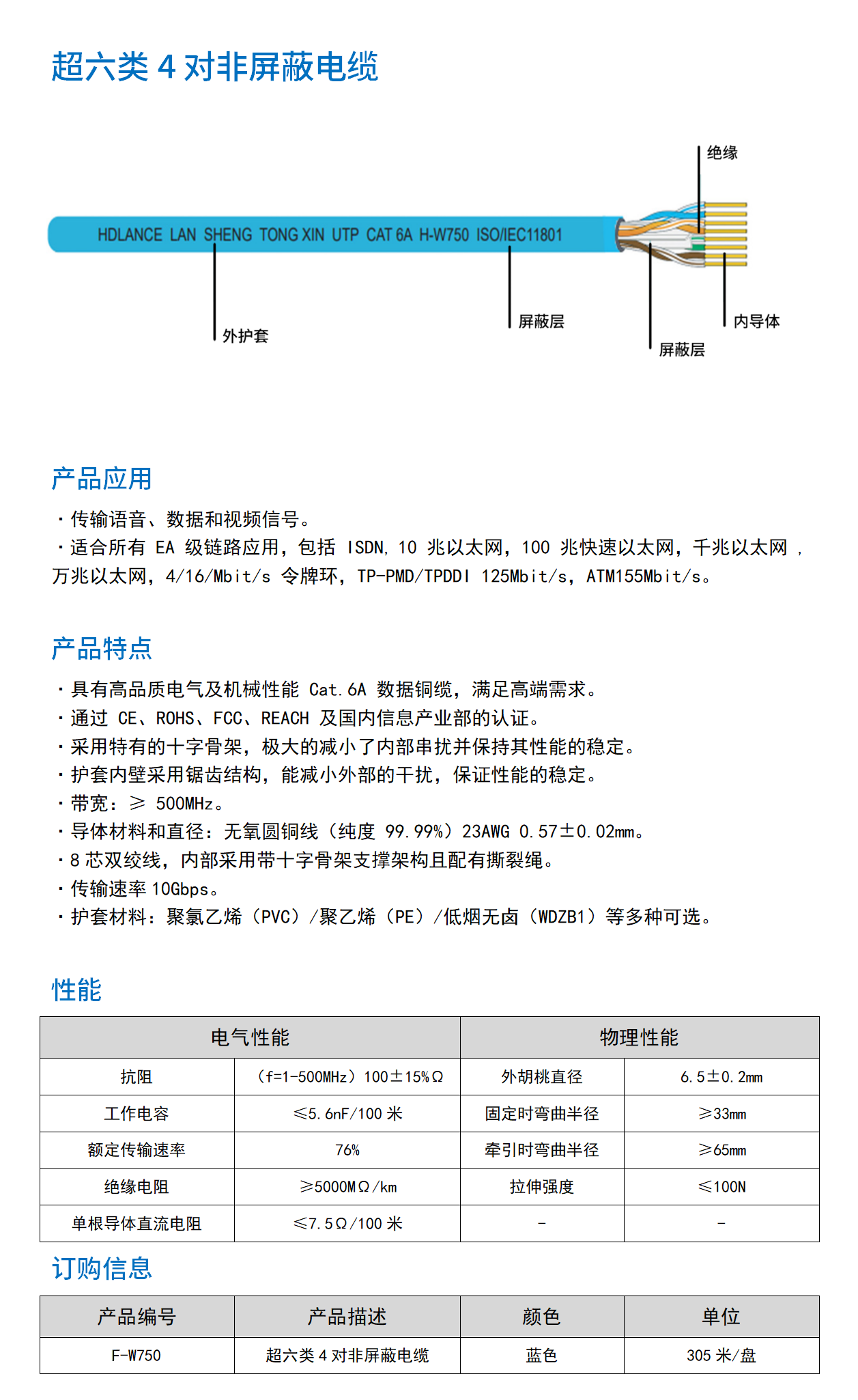 Cat6A 4对无屏蔽电缆6666666666666666666666